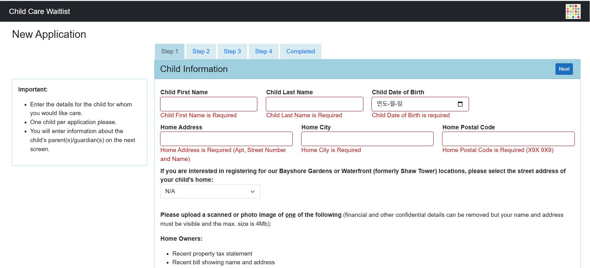 ▶ VSOCC 공식 웹사이트에서 신청할 수 있습니다. 아이 정보, 연락처, 희망 센터 등을 입력하고 제출하면 대기 명단에 올라갑니다.