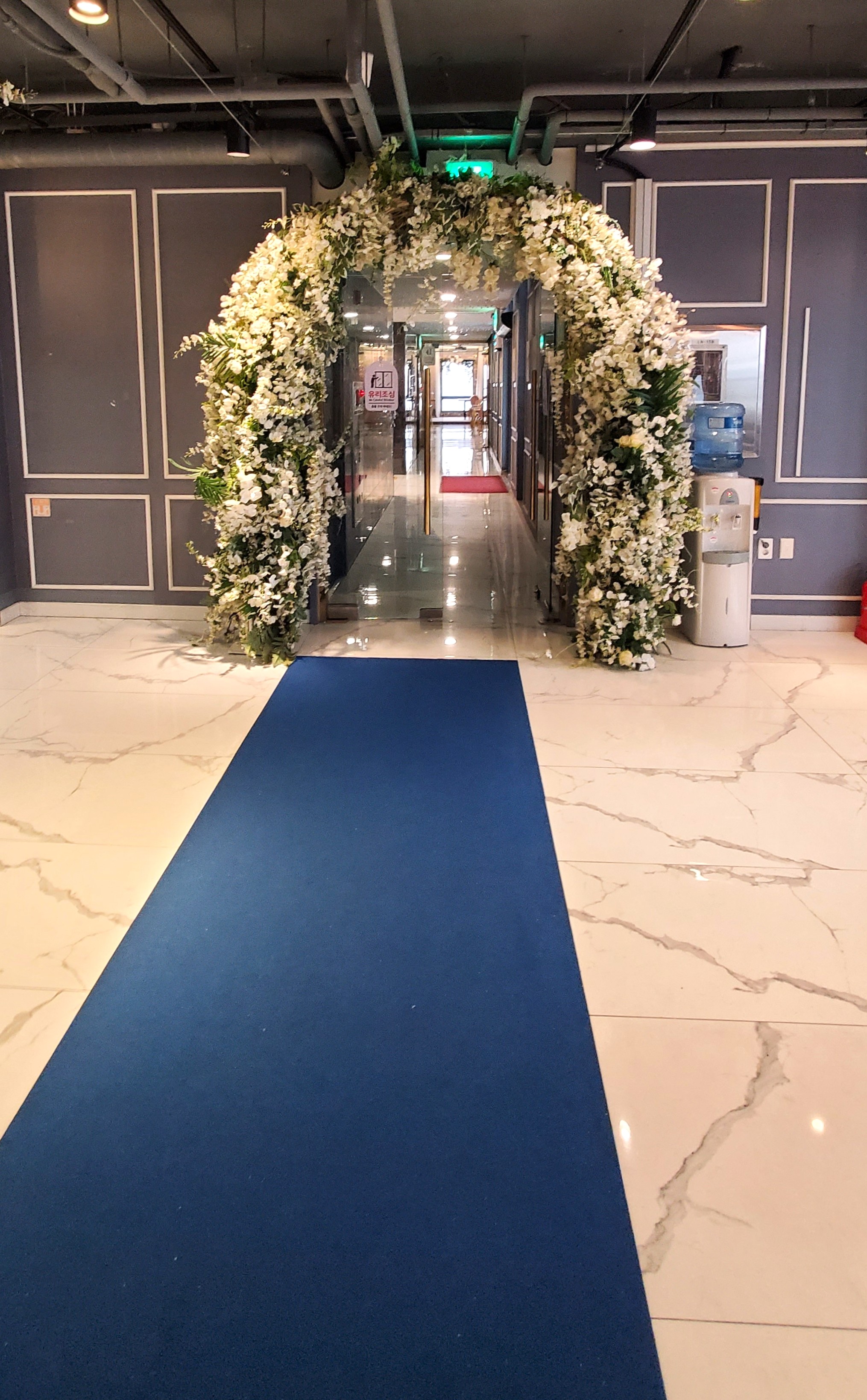 은은한 조명과 함께 화이트 오키드 장식이 드리워져 있어서